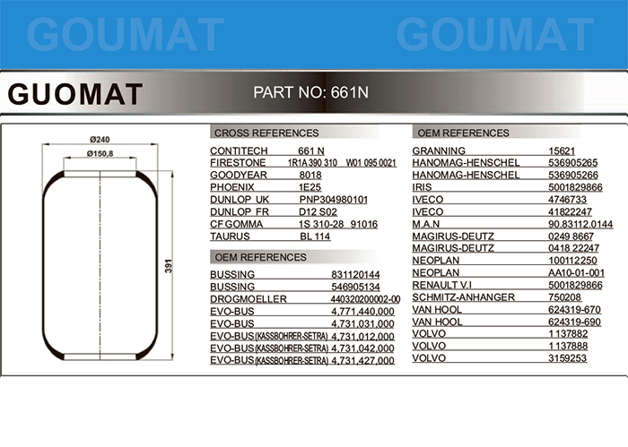 661N/金龍客車氣囊/客車空氣彈簧/CONTITECH 661N/FIRESTONE STYLE 1R1C-390-310/ W01-095-0021/PHOENIX 1E25,DUNLOP F (